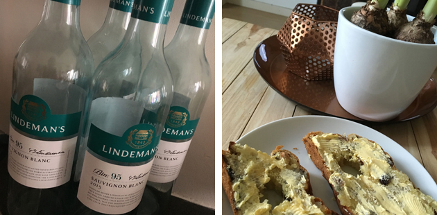 De wijnschade van gisteravond valt ook mee; verschillende familieleden moesten nog naar huis rijden. De Sauvignon van Lindemans smaakt me altijd errug goed.