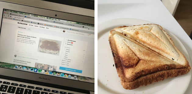 Ik loop vreselijk achter met blogs lezen, dus open ik mijn Bloglovin en scrolléik er een paar door. Onder het genot van een tosti ham/kaas!