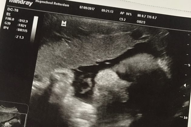 Hun docente legde uit dat het voor hen dus de eerste keer was dat ze een echte baby zouden echoën en dat ze daarbij opdrachten moesten uitvoeren uit hun lesboek. Halverwege de sessie zouden ze wisselen van plek en zou de ander dezelfde opdrachten nog eens doen. Ik vond het helemaal prima, want voor mij betekende het dat ik lekker lang naar mijn baby mocht kijken.